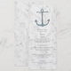 Parfait pour un mariage à thème nautique, cette carte de menu Rustique Mariage Ancre avec une ancre bleue sur un look arrière - plan gris clair marbré. Cette carte de menu classique et simple est facile à customiser avec vos détails mariages. Pour plus d'options de personnalisation, cliquez sur Personnaliser.