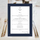 Menu Mariage d'Ancres nautiques simple | Bleu Marine
