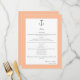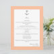Ajoutez une touche de sophistication balnéaire à votre célébration avec ce menu Peach Simple Nautical Ancres Mariage, avec un motif d'ancrage classique et un design côtier élégant. Parfait pour les réceptions sur le thème de la plage ou maritime, ce menu présente vos options de dîner de réception dans un agencement simple et propre. Élégant script et typographie moderne mettent en valeur chaque cours en complétant le style général de votre thème mariage côtier. Un détail élégant qui améliore le cadre de votre table et guide les clients à travers votre expérience culinaire soigneusement organisée.