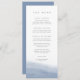 Ce menu mariage côtier chic est à l'image de notre collection Ebb Tide, avec un lave à l'aquarelle de couleur claire de bleu périvent poussiéreux sur le fond, avec votre texte personnalisé en lettres gris doux. Customisez avec jusqu'à quatre cours en utilisant les champs modèles.