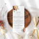 Elégant menu de mariage avec deux arrangements de fleurs d'aquarelle en bordeaux, orange et ivoire. Personnalisez avec vos noms et date et menu mariage.
