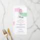 Cette conception présente une élégante silhouette noire illustrant une fleur de protéa royale. Les traits de brosse rose et vert donnent vie à l'illustration florale noire et blanche. Les touches de couleur rose et verte créent des tons floraux qui complètent le design. Le design est centré entre la typographie sophistiquée. Design élégant de carte de menu mariage avec des éléments modernes. Des invitations de mariage et d'autres articles de papeterie sont également disponibles.
