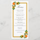 Menu mariage Gold frame avec le tournesol été ou automne et le thème floral marguerite