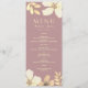 Menu moderne, élégant, floral et poussiéreux rose mariage avec fleurs d'or aquarelle.