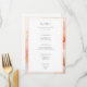 Imaginez un menu mariage qui donne l'impression d'entrer dans un beau jardin aux couleurs de pêche floues et douces. Ce menu arrière - plan à fleurs pêche combine des teintes pastel douces et des fleurs étonnantes d'une manière moderne et élégante.