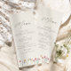 Ce menu fleur sauvage simple, moderne et dynamique est parfait pour les "I do's", quelle que soit la saison. Les élégants fleurs sauvages espacés sont à la fois charmants et simplistes avec la touche sophistiquée ajoutée de mariées monogrammées et initiales de mariés sur le côté inverse. Profitez de votre mariage au printemps, en été, en automne ou en hiver avec notre design coloré et minimaliste.