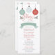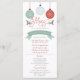 Ce joli menu de réception de Noël à la crème de neige, en vert menthe, gris clair et rouge sombre, est au centre de ce menu de réception de mariage qui comporte également une bannière pour les noms des mariés et des mariés avec les détails ci-dessous. Le menu des entrées et des boissons de marque est à l'avant et le menu du dîner complet se poursuit à l'arrière avec des saints boughs en haut et en bas dans les coins opposés.