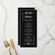 Un menu mariage noir moderne avec une bordure en faux argent et un texte de script.