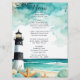 Belle carte mariage avec un phare noir et blanc nautique, étoiles de mer et coquillages. Parfait pour un mariage. Les mots peuvent être changés en fonction de vos propres détails ou exigences