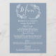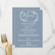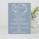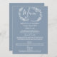 Doté d'illustrations à la main de guirlandes fleuries rustiques et d'un script élégant sur un arrière - plan bleu poussiéreux. Vous pouvez choisir votre couleur arrière - plan préférée pour créer un design unique. Personnalisez avec vos informations spéciales sur le menu du jour de mariage. Conçu par Thisisnotme©