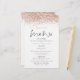 Menu Mariage du script de Parties scintillant or Rose Budget. Un prix économique de 5,5" x 8,5", sur un élégant stock LINEN de 110 lb - pour une sensation de luxe à un bon rapport qualité-prix, il est parfait pour les menus, ainsi que des invitations et des programmes, etc. Cette alternative de taille budgétaire est également disponible dans d'autres choix de papier. Le stock de carte SEMI-GLOSS 110 lb est à peu près de la même épaisseur qu'une carte postale, donc fonctionne bien aussi pour les invitations. Le papier FELT 100 lbs est de couleur bouffante, PAS blanc, donc ajoute une touche rustique. Le stock de papier MATTE 80lbs est blanc vif, pour une impression nette, parfait pour vos menus et programmes, tandis que le papier SATIN 80lbs est mince et léger, idéal pour les enceintes. Un script stylé pour le Menu d'en-tête et une bordure de parties scintillant fausse en or rose en haut sur les deux côtés. Personnalisez facilement le reste du texte à vos propres détails qui inclut des alternatives pour vos options végétaliennes ou végétariennes.