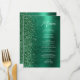 Cet élégant menu mariage moderne présente une bordure en parties scintillant de diamant sur un arrière - plan en métal brossé vert émeraude. Le texte personnalisable combine écriture manuscrite blanche et polices sans serif. Le design en métal brossé vert émeraude et en parties scintillant est répété à l'envers.