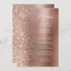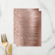 Cet élégant menu mariage moderne présente une bordure en parties scintillant de diamant sur un arrière - plan en métal brossé en or rose. Le texte personnalisable combine écriture manuscrite blanche et polices sans serif. Le métal brossé et la parties scintillant en or rose sont répétés à l'envers.