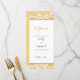 Carte de menu Elegant Gold et Black Wedding Reception conçue avec des garnitures élégantes de couleur or sur un arrière - plan blanc avec du texte noir, y compris : les Noms et Mariages de la Mariée et de la Chambre. Le revers comprend le texte : Menu, Appetizer, Entre et Dessert Sélections sur un arrière - plan de couleur or assorti. Pour personnaliser, insérez simplement vos détails dans notre modèle facile, en remplaçant l'exemple de texte. N'oubliez pas de consulter l'ensemble de la collection de Mariages de style élégant or et noir.