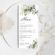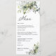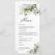 Menu Mariage vert. Cette invitation de mariage élégante et élégante présente de magnifiques aquarelles peintes à la main, une végétation fleurie d'eucalyptus. Trouvez les articles correspondants dans la collection de verdure florale Eucalyptus Aquarelle.