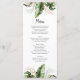 Végétation tropicale luxuriante et fleurs roses rousses aux accents d'or cartes de menu mariage.
