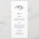 Menu minimaliste Simple Formal Noir et Blanc Mariage avec Initiales.