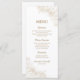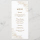 Ajoutez une touche de sophistication à votre réception de mariage avec le menu mariage élégant Floral Blanc. Doté d'un design floral blanc intemporel et de détails dorés luxueux, cette carte de menu vous fera profiter de l'élégance et du charme de votre table. Magnifiquement conçu sur des cartons de qualité supérieure, ce menu personnalisable met en valeur vos choix de boissons et de plats soigneusement préparés, ce qui laisse une impression durable sur vos invités. Son design minimaliste et chic se marie harmonieusement avec n'importe quel thème mariage, assurant une présentation cohérente et étonnante. Caractéristiques principales : Design élégant : motifs floraux blancs aux accents dorés chatoyants pour une touche luxueuse. Contenu personnalisable : Adaptez le menu pour présenter vos options de restauration uniques. Matériaux de première qualité : Cartes de haute qualité pour une finition polie et professionnelle. Style polyvalent : Complète les thèmes mariages classiques, romantiques ou modernes. Correspondance Suite : s'harmonise parfaitement avec la collection de papeterie mariage White Gold Floral.