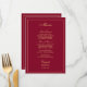 Un menu mariage élégant pour vous permettre de personnaliser. Sur un arrière - plan bordeaux avec écriture or. Une combinaison d'une police de script élégante et de polices modernes faciles à lire. Un grand espace a été alloué pour les options de menu. Le verso de la carte a des pois d'or pointé fin. Besoin d'aide pour personnaliser ? Contactez le concepteur.