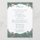 Menu de mariage vintage or bleu vert cuivre paisley paon