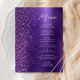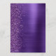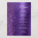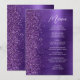 Ce menu de mariage moderne élégant présente une bordure scintillante de faux diamants sur un fond en métal brossé violet. Le texte personnalisable combine une écriture manuscrite blanche et des polices sans empattement. Le design en métal brossé violet et scintillant est répété au verso.