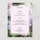 Menu Mariage Summer Hydrangea Blossoms conçu dans des teintes douces de rose, vert et lilas, avec une bordure verte d'été. Le texte avant comprend : MENU MARIAGE et les Noms de la mariée et de la chambre. Le texte inverse comprend : Menu Mariage Selections - Appetizer, Entre, et Dessert. Les deux côtés sont bordés d'une bordure. Pour personnaliser, remplacez simplement l'exemple de texte en utilisant notre modèle pas à pas facile. N'oubliez pas de consulter la collection de Mariages Summer Hydrangea Blossoms pour les cartes et accessoires correspondants.