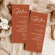 Élevez votre mariage de automne avec notre menu de Mariage en terre cuite d'automne simple, l'ajout parfait à votre mariage de pièces centrales d'automne. Conçu dans une teinte de terre cuite chaude, il complète les thèmes mariage orangé brûlé et mariage de automne boho. Améliorez votre décor mariage de automne avec cette carte, idéale pour les tables mariages de automne et la décoration des tables mariages de automne. Complétez vos décorations mariages de automne avec cette touche élégante à vos idées mariages de automne.