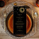 Carte de menu mariage personnalisée mystique céleste avec galaxie laiteuse ciel de minuit avec poussière d'étoile, lune de croissant et autres symboles astrologiques en noir et or. Cette carte est facilement modifiable. Si vous avez besoin d'aide pour la personnalisation de cette carte ou si vous avez besoin de plus de produits correspondants pour cette collection, envoyez-moi un message aimable via Zazzle.