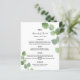 Personnalisez et ajoutez vos noms, votre date et le menu mariage. Arrière - plan blanc, orné de végétation d'eucalyptus, sprigs.