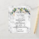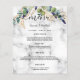 Un menu élégant, moderne et mariage. Un arrière - plan en pierre de marbre décoré d'eucalyptus verdure et de feuilles dorés Personnalisez et ajoutez vos noms, date et menu mariage. Lettres de couleur noire. Le mot Menu est écrit avec un script de style à la main tendance avec des swashes. Retour : arrière - plan blanc et faux parties scintillant doré baisse. Les cartes de table et les cartes de place correspondantes sont disponibles dans notre magasin.