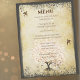 Whimsical Magical Tree of Love Pink Heart Leaf Tree on Tea Sardé Silver Chaud Toned Metallic Paper with an Overlay of Antique Sheet Music and some mignon petits designs tourbillonnant pour rehausser les racines de l'amour sur ce faire-part de mariage boisé unique...
