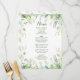 Ce menu mariage est composé de feuilles d'eucalyptus de verdure botanique. C'est parfait pour un mariage d'été de printemps.