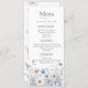 Notre Menu Fleur sauvage Moderne est une façon merveilleuse de célébrer et de partager votre événement joyeux. Ce magnifique fleur sauvage d'aquarelle bleu peint est parfait pour le printemps ou l'été, n'importe quel mariage à thème de jardin.