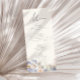Cette carte de menu de mariage présente un dessin floral à l'aquarelle avec des fleurs élégantes dans des nuances variées de bleu poussiéreux et de crème.