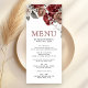 Menu de mariage élégant avec thème floral burgundy mettant en vedette de belles fleurs.