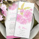 Belle aquarelle en fleur rose peinte mariage menu du dîner ou menu spécial événement. Modifiez ce menu de 4 plats avec vos propres mots. Menu de printemps rose simple mais moderne. Idéal pour les mariages roses, les mariages printaniers ou les évènements à thème printanier. © Design et aquarelle de Sarah Trett pour www.mylittleedenweddings.com sur zazzle.