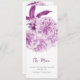 Belle aquarelle violette fleurie couleur mariage peinte menu du dîner ou menu spécial événement. Modifiez ce menu de 4 plats avec vos propres mots. Menu de printemps mauve simple mais moderne. Idéal pour les mariages violets, les mariages printaniers ou les évènements thématiques du printemps. © Design et aquarelle de Sarah Trett. www.sarahtrett.com pour www.mylittleedenweddings.com sur zazzle.