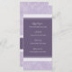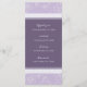 Elégant menu de dîner de mariage dans lavande élégante, couleur violet foncé et blanc, personnalisable avec vos détails de dîner, disponible dans une large gamme de produits mariages assortis.