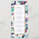 Cadre en faux or audacieux entouré d'un abstrait floral classique moderne dans vert frais, bleu et rouge, élégant et élégant. Des menus mariages pour mariage classique moderne au printemps et en été. Voir toutes les pièces correspondantes dans la collection.
