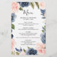 Menu mariage floral rose bleu marine foncé avec élégant bouquet de bleu marine, bleu royal, blanc, rose blush et feuilles d'eucalyptus vert sauge. Veuillez me contacter pour toute aide sur la personnalisation ou si vous avez besoin d'un autre produit avec ce design.
