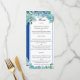 Vintage mais moderne, avec éléments naturels et style romantique doux. Au fond du menu, un arrière - plan bleu saphir époustouflant aux détails floraux luxueux, les noms du couple heureux et leur date de mariage. Design©Rosalind Moore, Cherry Lane Designs.