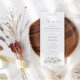 Mariage Floral Citrouille blanc moderne. Trois citrouilles aux flancs blancs et au feuillage turquoise sont au fond avec un turquoise de coordination à l'arrière, avec un élégant script pour Menu et facile à personnaliser le reste du texte selon vos besoins.