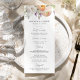 Élégante carte de mariage floraux avec un bouquet de fleurs d'aquarelle et de feuillage dans les tons pêche, ivoire, orange, rose vif, violet, jaune et vert. Personnalisez les menus de mariages floraux printaniers avec vos noms, votre date de mariage et les détails du menu. Le magnifique menu à fleurs mariage est parfait pour les mariages du printemps et de l'été.