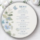 Le menu de Mariage floral Dusty Blue propose des fleurs de céleste bleu poussiéreux et de delphinium avec une végétation d'eucalyptus agrémentée de papillons. Ajoutez votre texte personnalisé dans un élégant script moderne.Affichez la collection. Conçu pour vous par Evco Studio www.zazzle.com/store/evcostudio