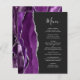Le bord gauche de cet élégant menu mariage moderne comporte une bordure d'aquarelle violette ornée d'une parties scintillant en faux argent. Le texte personnalisable combine écriture manuscrite gris argenté et polices cuivre sur un arrière - plan non noir. L'envers est assorti d'un design d'agate violet et argenté.