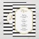 Menu dîner mariage dans élégante rayures noir et blanc motif et détails or, personnalisable avec vos détails et disponible en produits mariages correspondants.