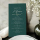Élever votre réception avec notre menu minimaliste mariage vert émeraude, un mélange parfait de simplicité et d'élégance. Doté d'une délicate corde dorée et d'un script de calligraphie moderne, ce menu dégage élégance et charme. Guidez vos invités à travers un délice culinaire avec ce design exquis, où chaque détail reflète la beauté intemporelle de votre célébration.
