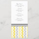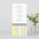 Elégant menu de dîner de mariage dans élégant citron jaune, gris et blanc chevron zigzags rétro motif, personnalisable avec vos détails de dîner, disponible dans une large gamme de produits mariages assortis.