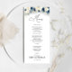 Menu Mariage Marine Blue and White Roses. Cette douche de mariage élégante et élégante est dotée d'une magnifique aquarelle peinte à la main Marine bleu et blanc Roses. Trouvez les articles correspondants dans la collection Blue and White Rose de la Marine.