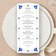Ce menu de talavera mariage est inspiré par les beaux carreaux et l'art populaire que l'on trouve au Mexique et dans tout le sud-ouest américain. La couleur bleue audacieuse et la typographie classique créent un look élégant à la fois moderne et traditionnel. Cette belle carte est parfaite pour votre soirée mexicaine à thème ou réception de mariage de destination.